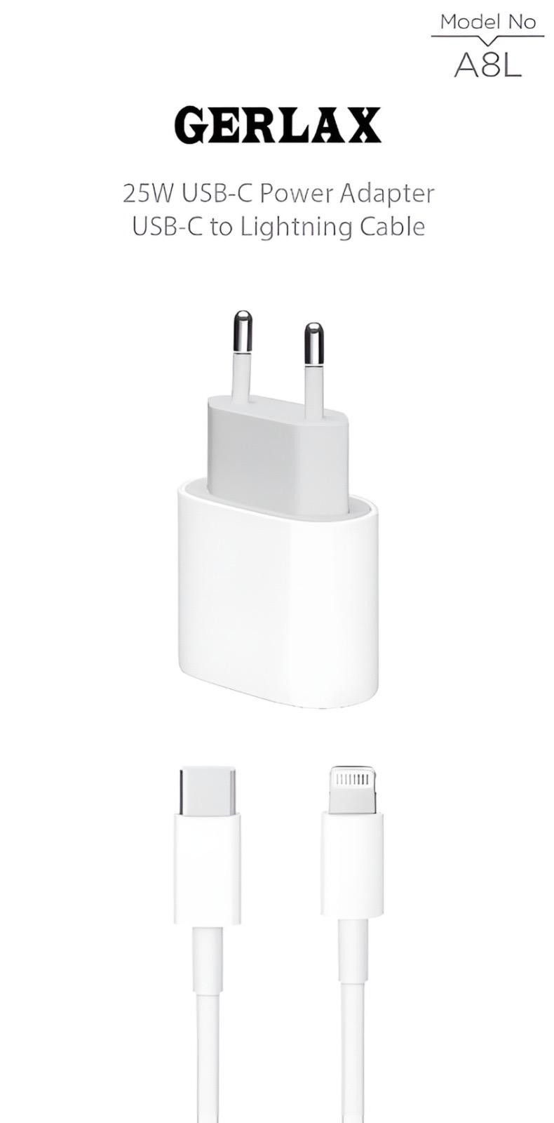 GERLAX 25W PD Hızlı Şarj Aleti Type-C to Lightning Kablolu